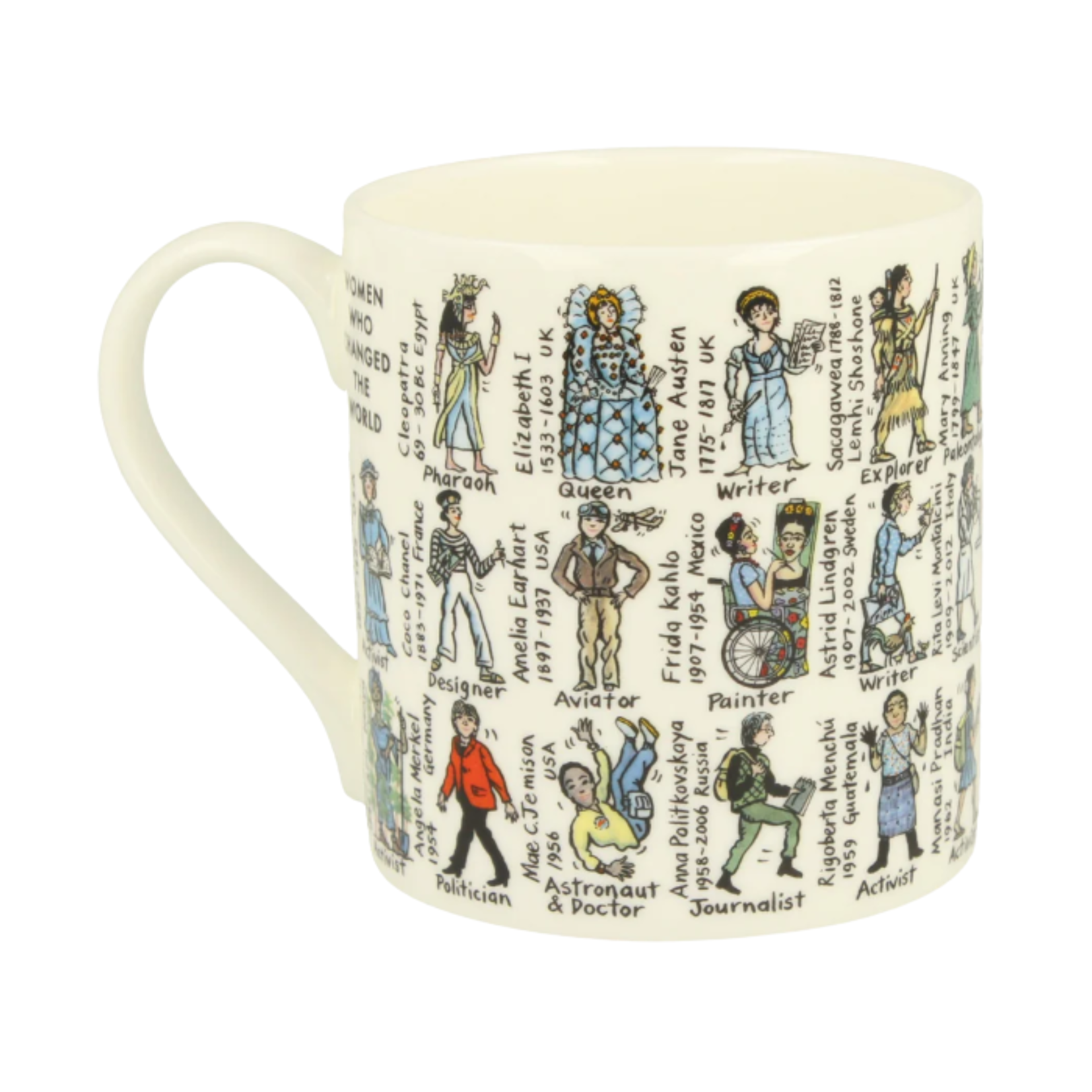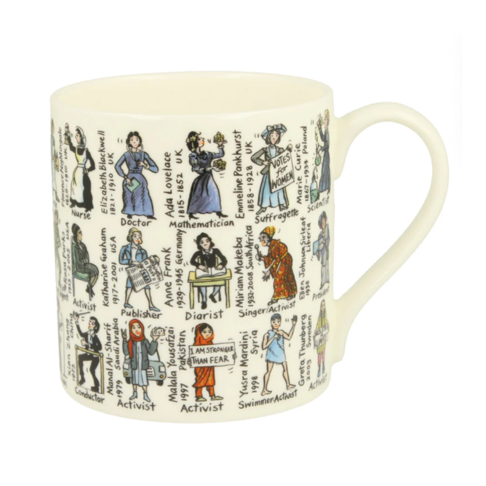 Raise a cup to the change-makers. This 300ml ceramic mug features iconic women who changed the course of history, making every tea or coffee break feel a little more meaningful. Comfortable to hold and perfect for everyday use, it’s a lovely gift or desk companion. 300ml.