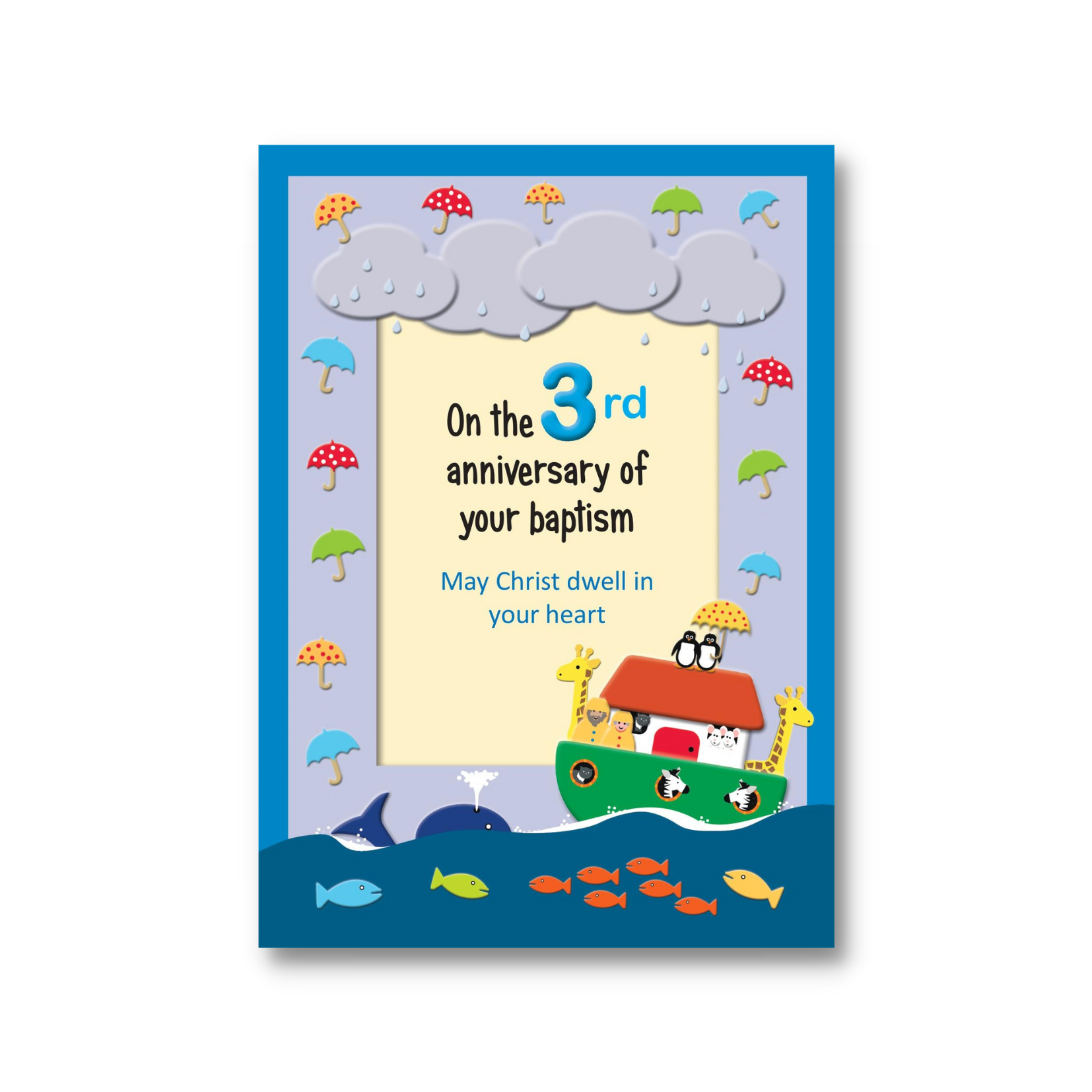 Text: On the 3rd anniversary of your baptism. May Christ dwell in your heart.