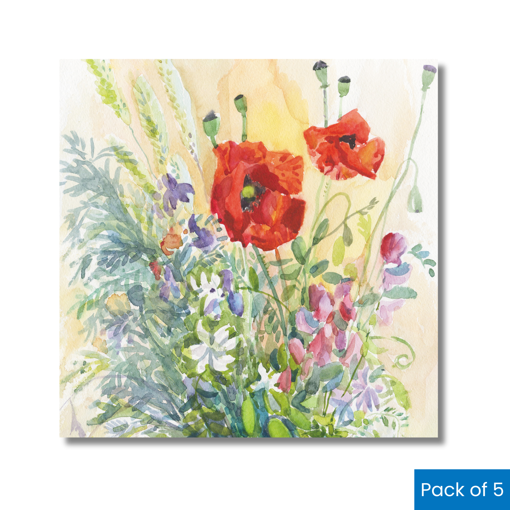 Pack of 5 cards with envelopes, size 141mm x 141mm.