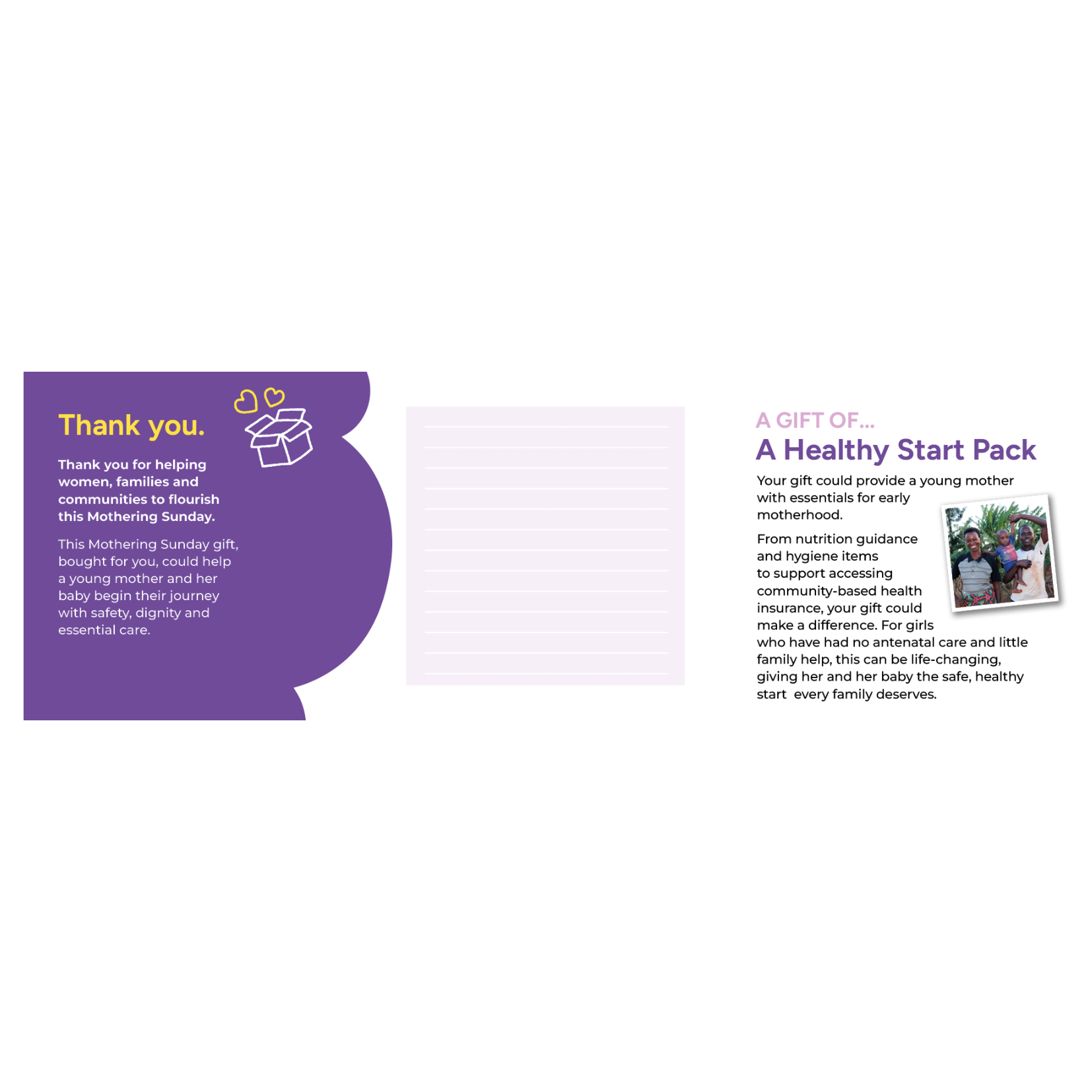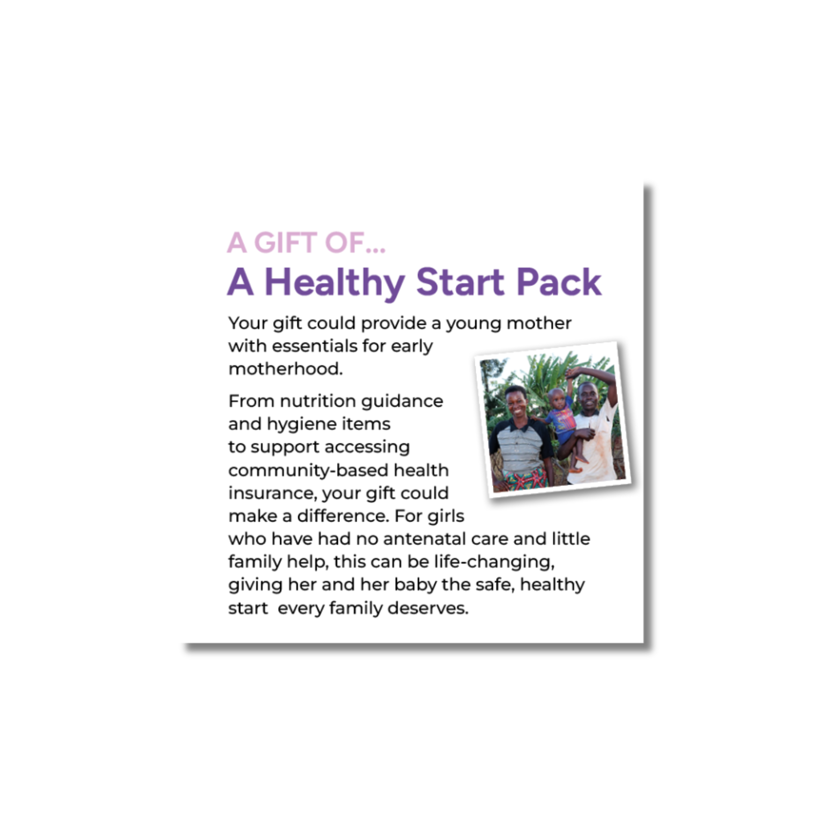 From nutrition guidance and hygiene items to support accessing community-based health insurance, your gift could make a difference. For girls who have had no antenatal care and little family help, this can be life-changing, giving her and her baby the safe, healthy start every family deserves.