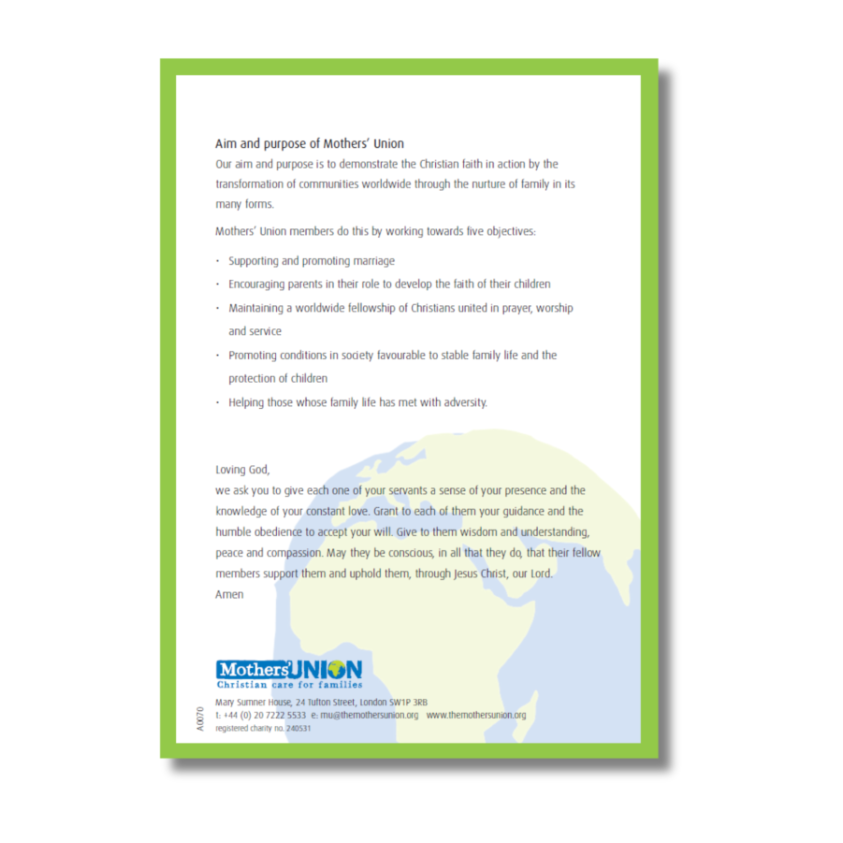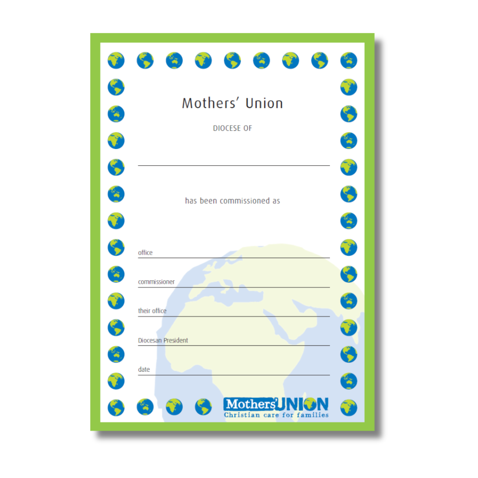 Mothers' Union commissioning certificate.