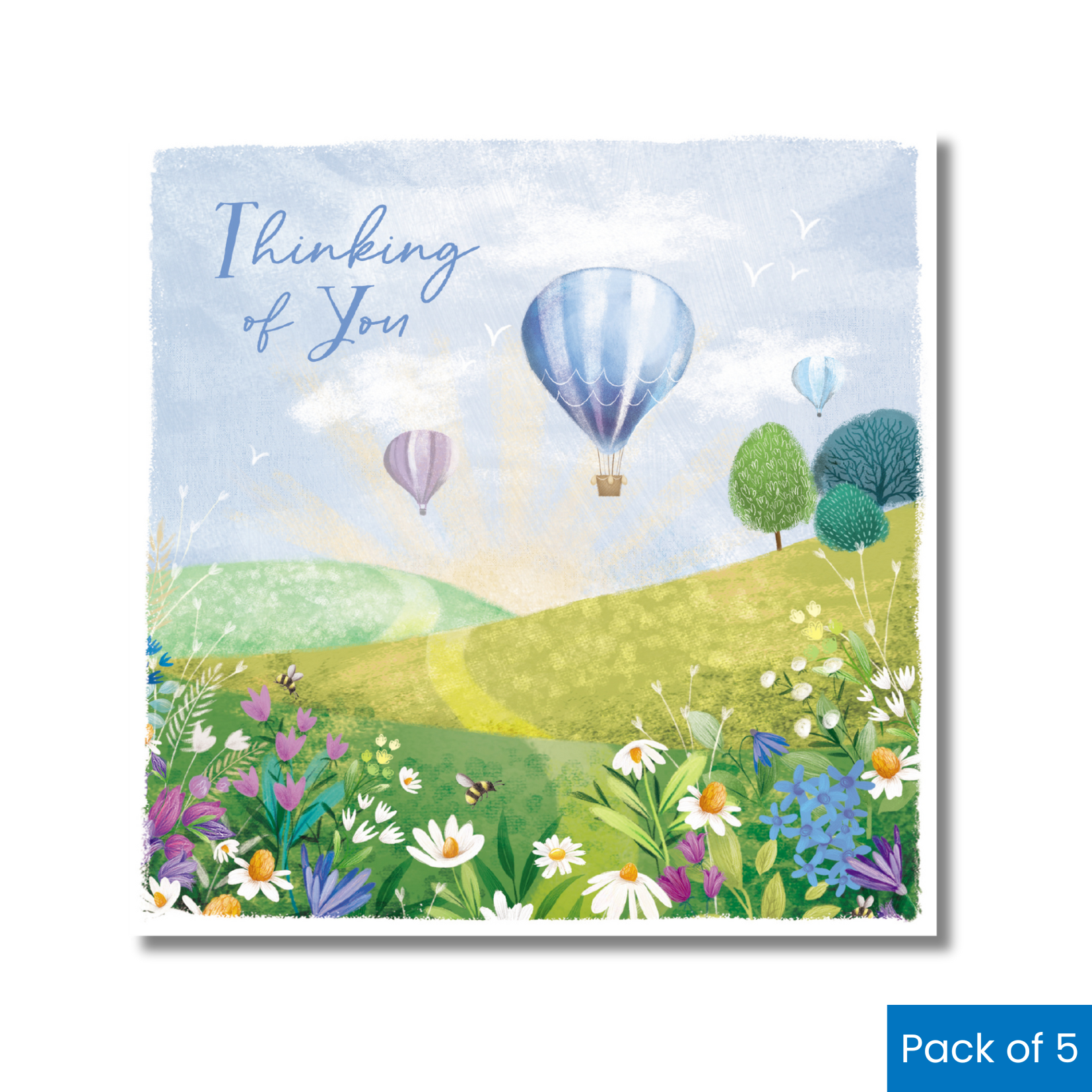 Hot Air Balloons & Field pack of 5 thinking of you cards.