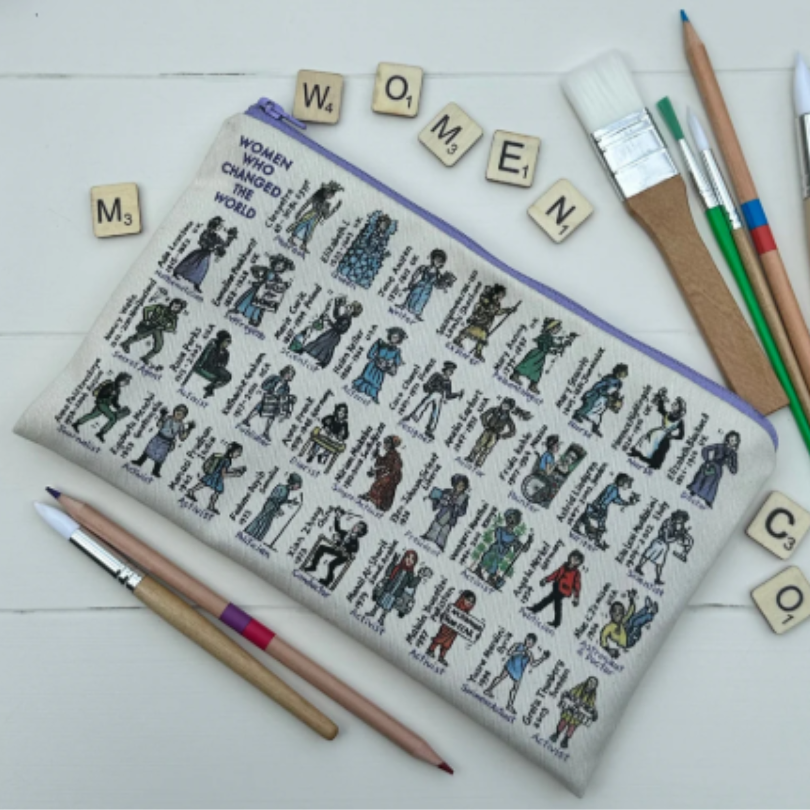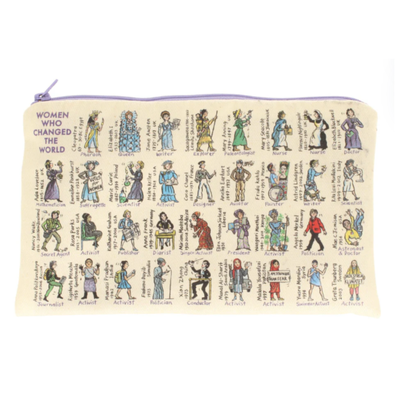 Organise with inspiration close at hand. This versatile zip bag features illustrated trailblazers and is perfect for stationery, makeup or travel essentials. Compact yet roomy, it’s designed to slip easily into your handbag or rucksack. Practical, purposeful and full of character.