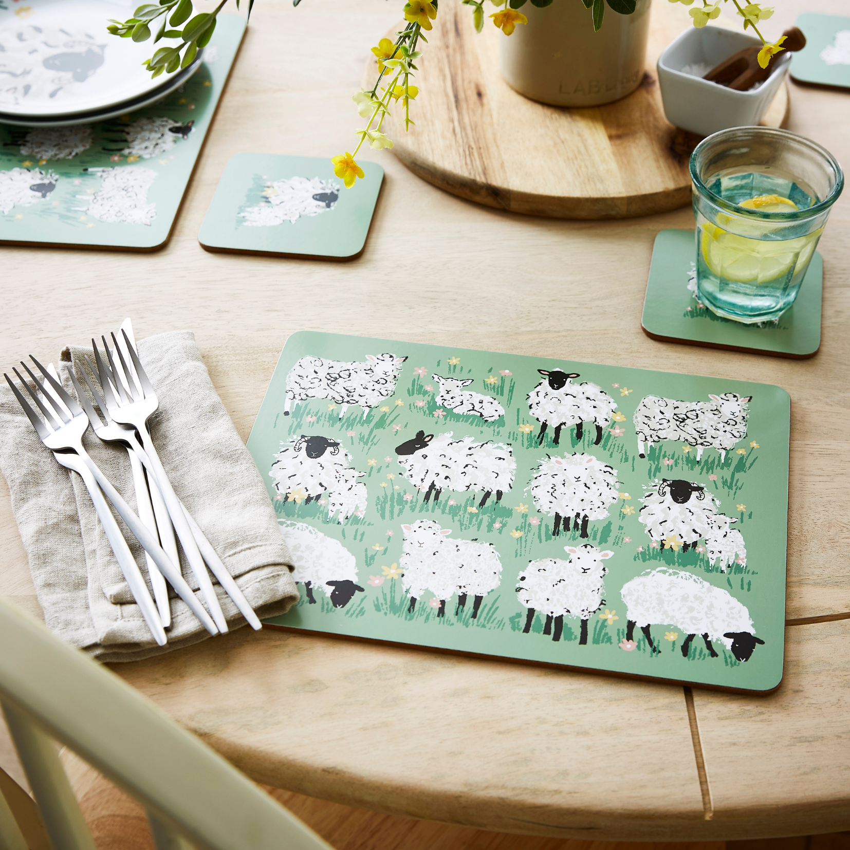 These Woolly Sheep placemats protect your table while adding a welcoming country style. Durable and easy to wipe clean, they suit both busy family meals and casual dining. The repeating sheep pattern creates a cheerful table setting. A dependable choice for everyday use. Comes in a pack of 4.